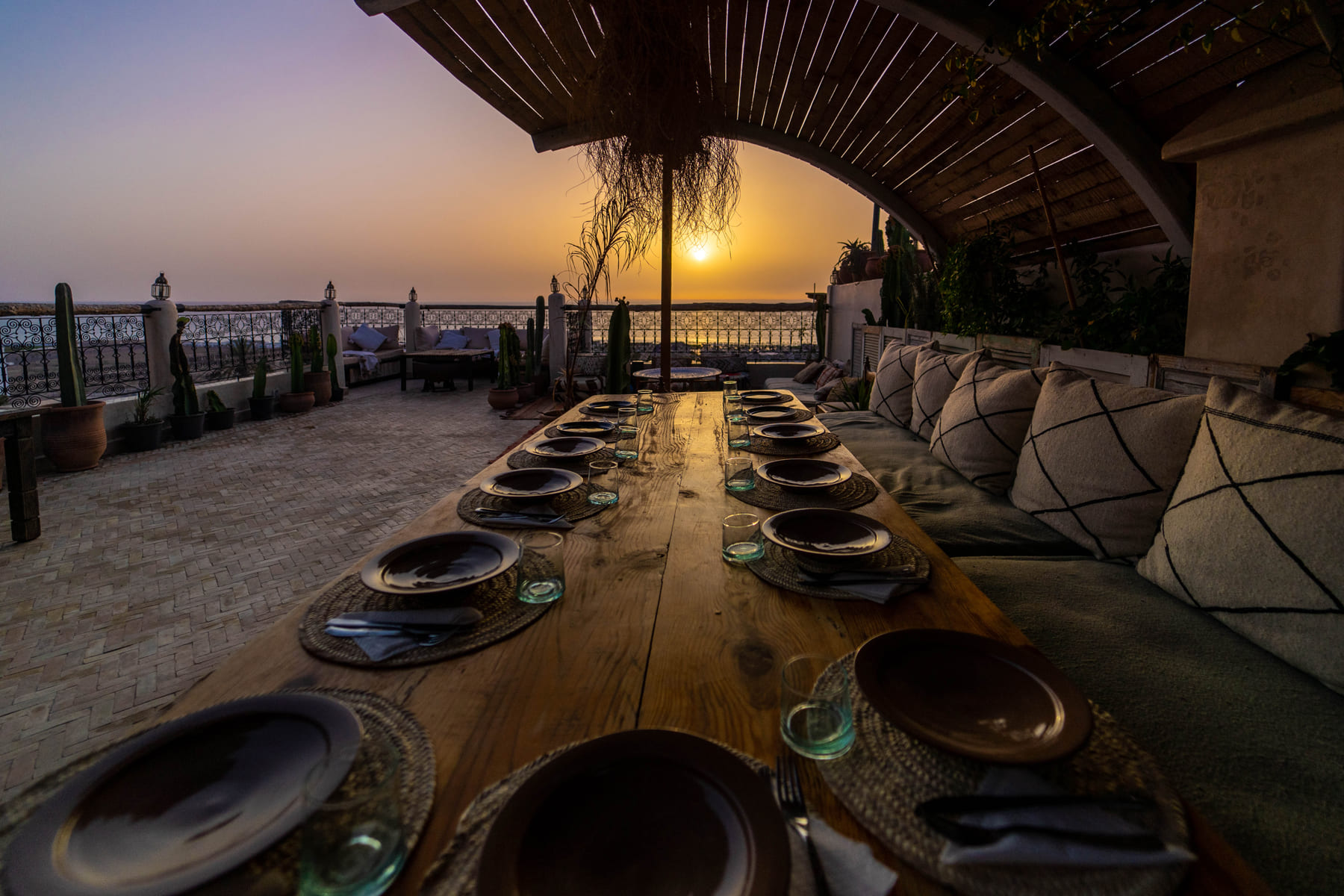 Le soir, notre terrasse sur le toit se transforme en une table agréable où nous vous servons des plats variés. Couscous, tajine ou pastilla – il y a toujours une variante végétarienne et végane à votre disposition. Pour cela, il faut simplement cocher le matin la case correspondante sur notre liste de dîners et tout sera préparé par nos soins.